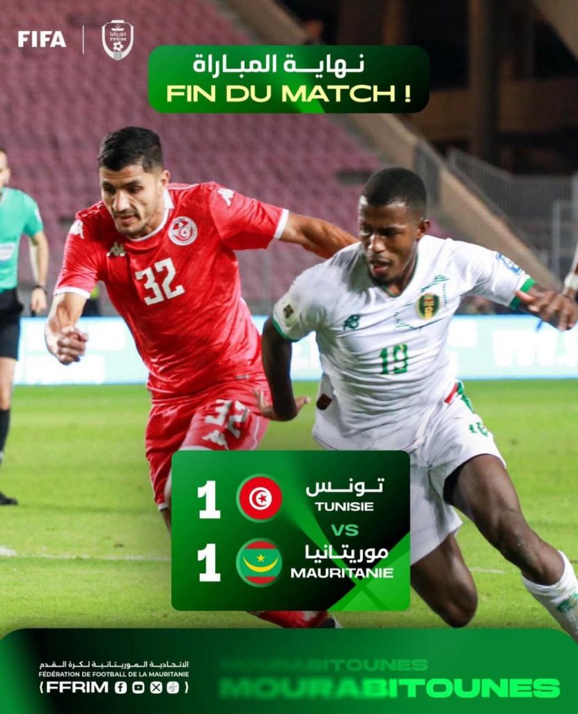 وافتتح المنتخب التونسي التسجيل مستفيداً من خطإ في التفاهم بين المدافع نوح العبد والحارس بوبكر جوب، قبل أن يتمكن المدافع البديل محمد صار من تعديل الكفة لصالح المرابطين في الشوط الثاني.