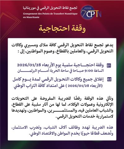 أعلن تجمع نقاط التحويل الرقمي إغلاق جميع وكالات التحويل الرقمي التابعة للوكلاء والمستثمرين، وذلك احتجاجًا على فرض ضريبة جديدة بنسبة 10% على الوكلاء و0.1% على التحويلات الرقمية.