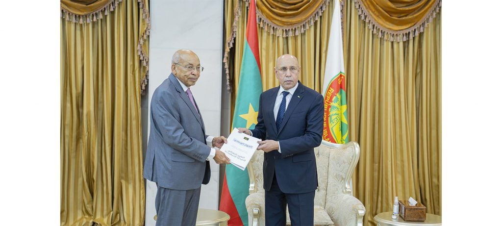 تسلم رئيس الجمهورية، السيد محمد ولد الشيخ الغزواني، اليوم الاثنين، من منسق الحوار الوطني موسى فال، التقرير الذي يضم رؤى ومواقف الأحزاب السياسية والقوى الوطنية بشأن الحوار الوطني المرتقب.