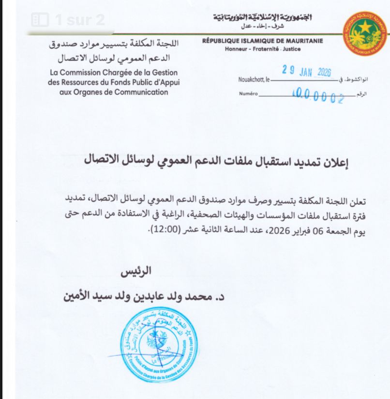 وأعلنت اللجنة أن تمديدها لفترة استقبال الملفات إلى غاية يوم الجمعة 06 فبراير 2026 عند الساعة الثانية عشرة زوالاً (12:00).