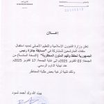 أعلنت وزارة الشؤون الإسلامية والتعليم الأصلي تمديد فترة استقبال ملفات المترشحين للمشاركة في النسخة السادسة من “مسابقة جائزة رئيس الجمهورية لحفظ وفهم المتون المحظرية”. وأوضحت الوزارة في إعلان نشرته عبر صفحتها على الفيسبوك اليوم الجمعة، بأن التمديد يسري من الجمعة 3 أكتوبر 2025 وحتى نهاية الدوام الرسمي يوم الجمعة 17 أكتوبر 2025. ولفت الإعلان إلى أن التمديد جاء استجابة لرغبة ... أكمل القراءة »